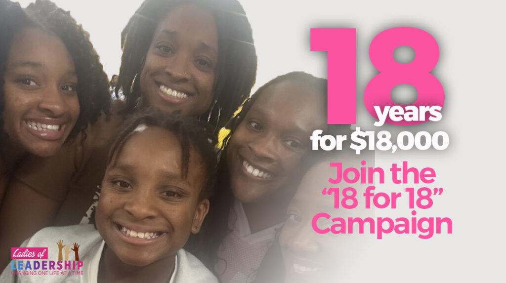 This is our legacy year—18 years of changing one life at a time. We’re raising $18,000 to expand mentorship, summer reading & enrichment, and our Women of Worth moms program. Your gift—$18, $36, $180, $1,800, or any amount ending in 18—moves us closer